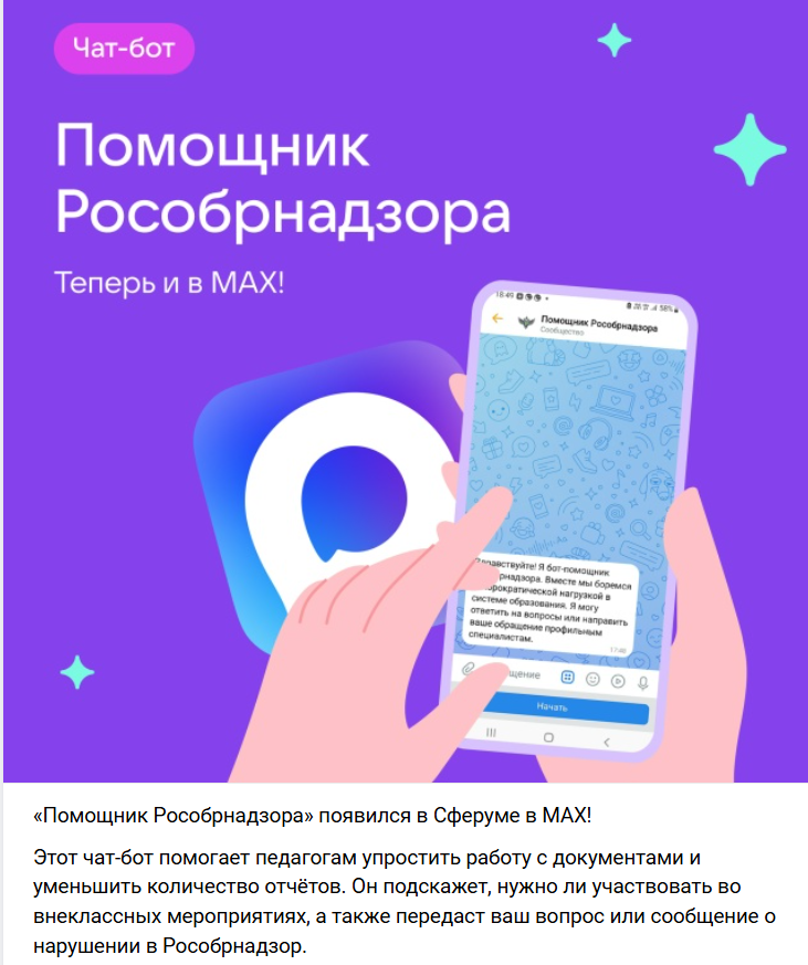 Письмо Рособрнадзора от 31.03.2025 № 01-53/08-01 «О работе сервиса «Помощник Рособрнадзора»