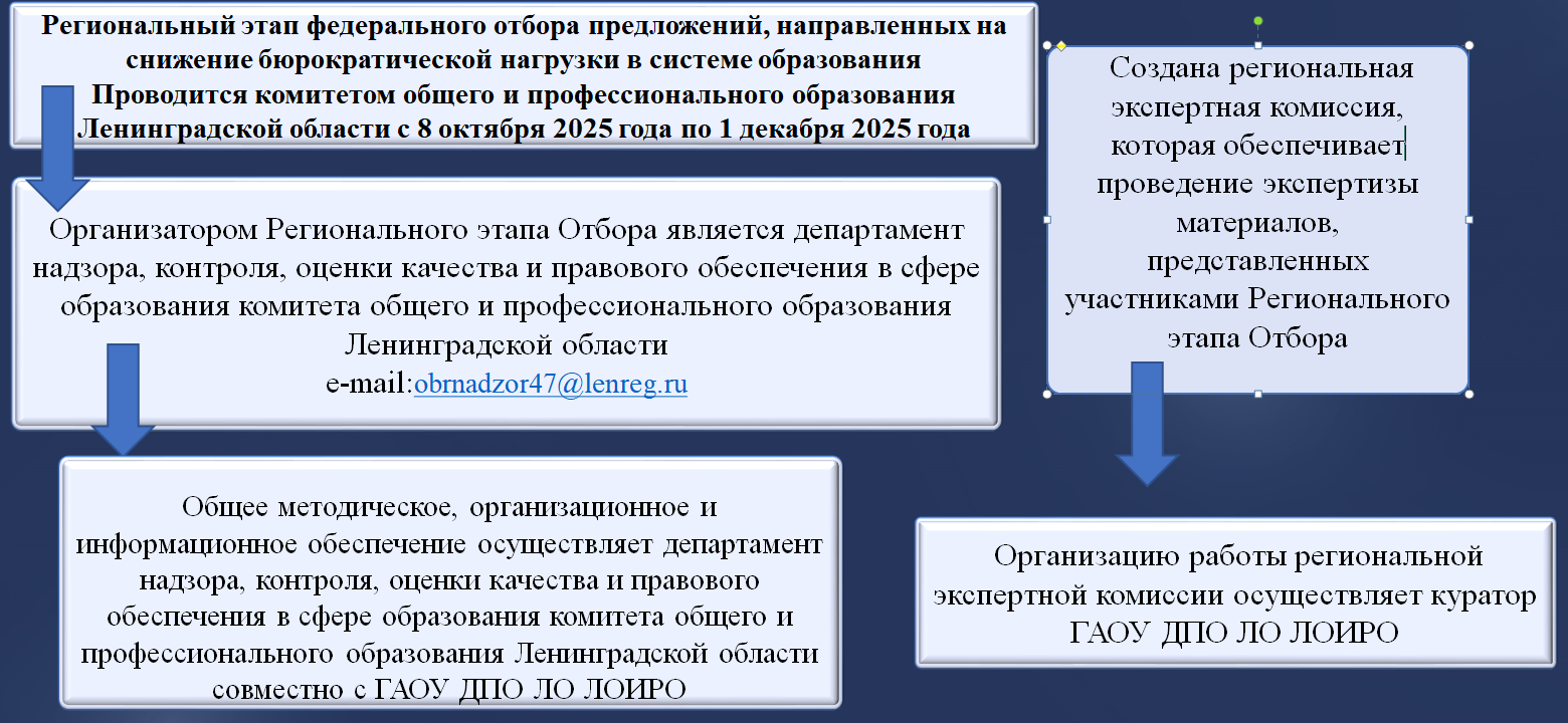 Положение о проведении в Ленинградской области регионального этапа федерального отбора предложений, направленных на снижение бюрократической нагрузки в системе образования, «Образование без бюрократии»